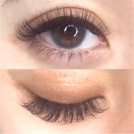 エクステで自まつ毛を挟み込んで装着していくので1本1本濃さが出ます。自まつ毛が少なくてもボリュームが出る仕上がりでアイライン効果もあります。また、1ヶ月半〜2ヶ月程もつのでメンテナンスに通う回数が少なく済み、自まつ毛への負担を減らすことができます。