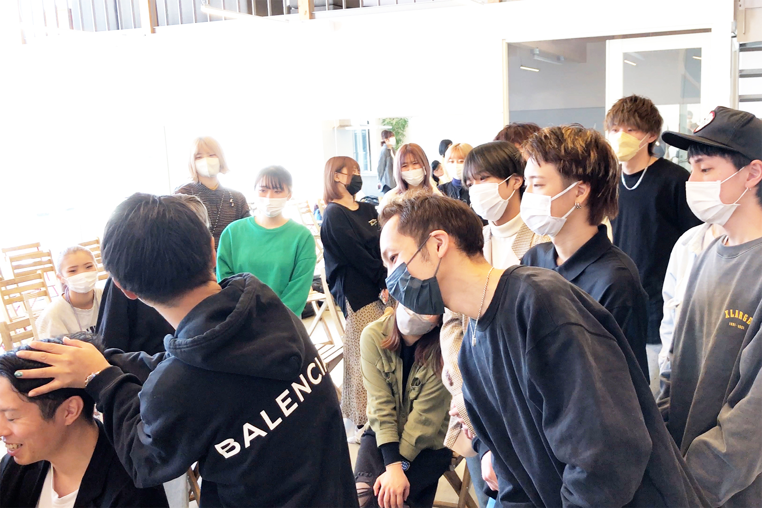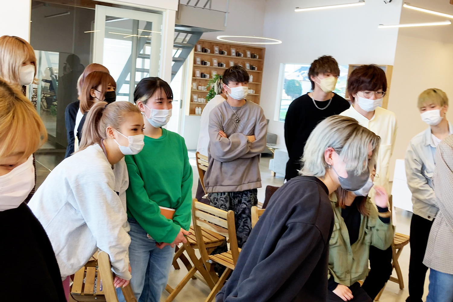 月例ジョイントミーティングは各セクションの進捗報告や各々の課題に対して目標を立て、話し合いの場が持てる貴重な時間。今回はオーナーによるカット講習会もありスタッフも集中して参加していました。お客様の笑顔のためにスタッフ一丸となって成長し続けます!